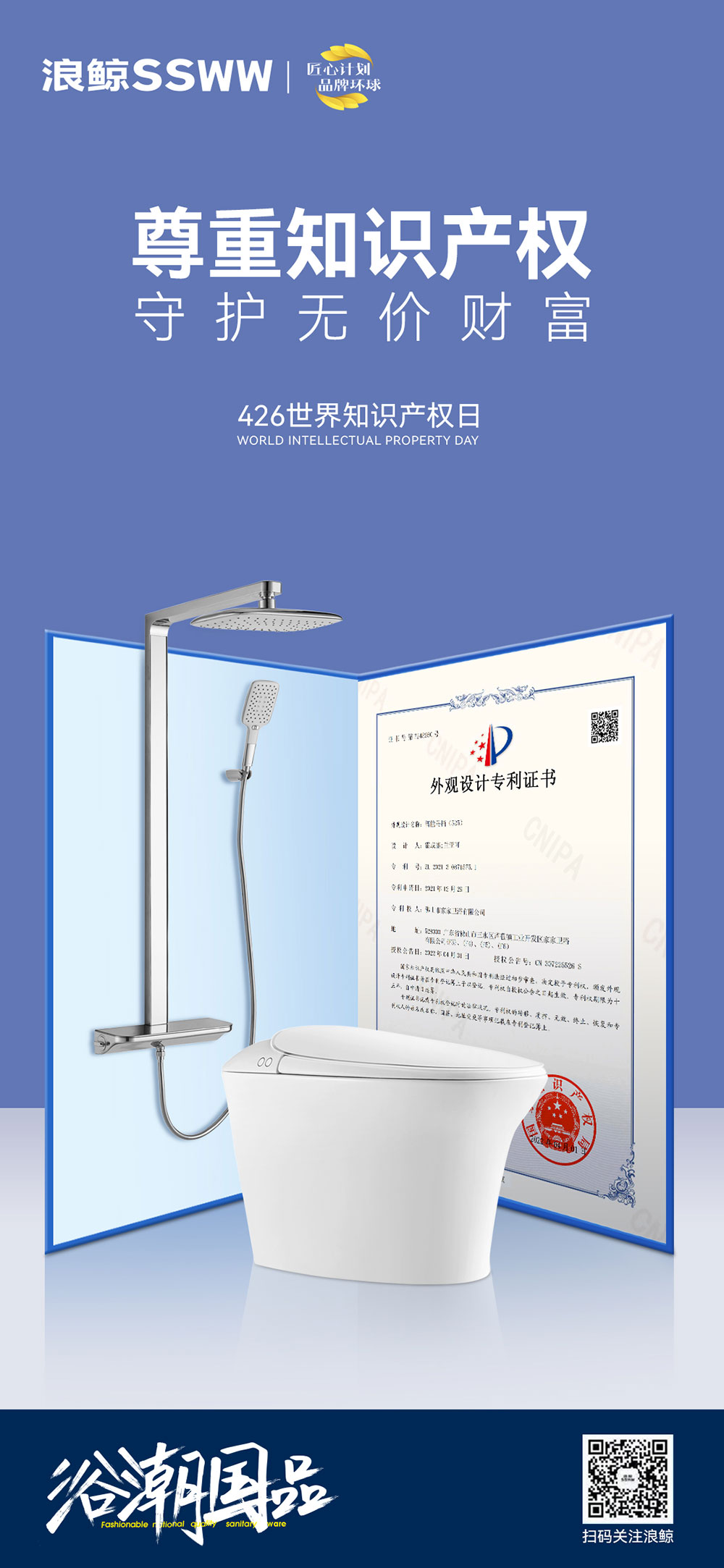 世界知識(shí)產(chǎn)權(quán)日,浪鯨衛(wèi)浴再一次用實(shí)際行動(dòng)表明支持原創(chuàng)的決心,在國家以及行業(yè)的各項(xiàng)規(guī)范準(zhǔn)則之上,以身作則,維護(hù)自身企業(yè)合法權(quán)益,共同營造良好的市場競爭環(huán)境,推動(dòng)高質(zhì)量發(fā)展的內(nèi)在要求,助力創(chuàng)新型國家建設(shè)。