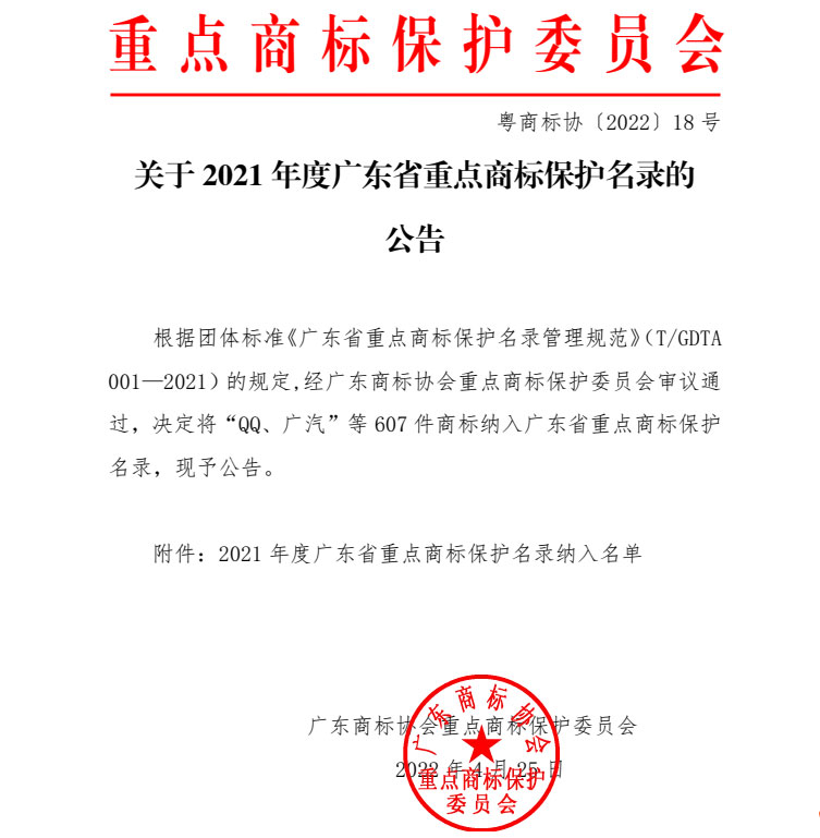 《2021年度廣東省重點(diǎn)商標(biāo)保護(hù)名錄》
