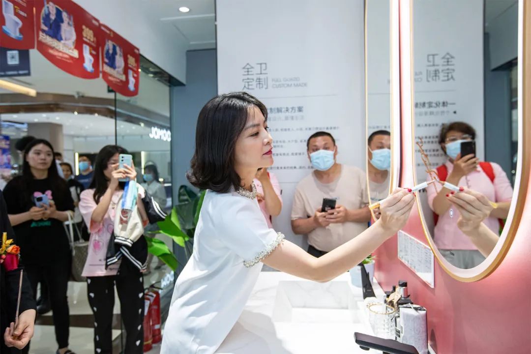在被問及最喜歡店內(nèi)浪鯨哪款產(chǎn)品時,馬郁直言道:“要說喜歡的,莫過于浪鯨的國潮系列浴室柜了。一抹極具中國特色的中國紅,配以橢圓高長智能化妝鏡,將線條美、幾何感與國潮元素巧妙結(jié)合;精致妝臺收納設(shè)計,配以中國紅內(nèi)格,既顯東方韻味,又不失時尚美感,不愧為‘90后、Z時代’年輕、時尚群體的專屬生活‘潮’空間”。說完還向粉絲們現(xiàn)場種草,并在產(chǎn)品上簽名、合影留念。