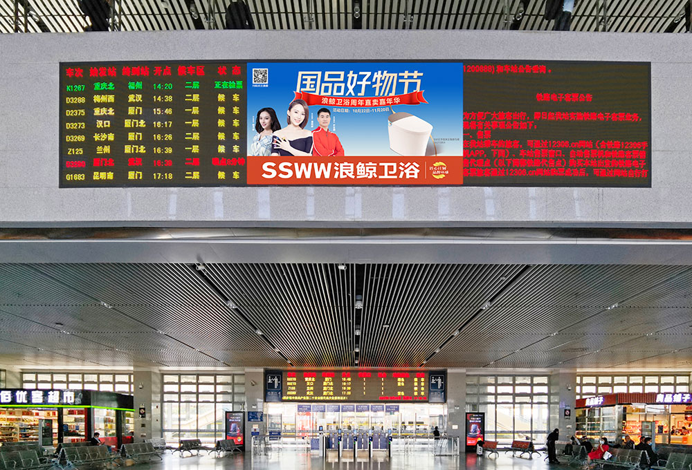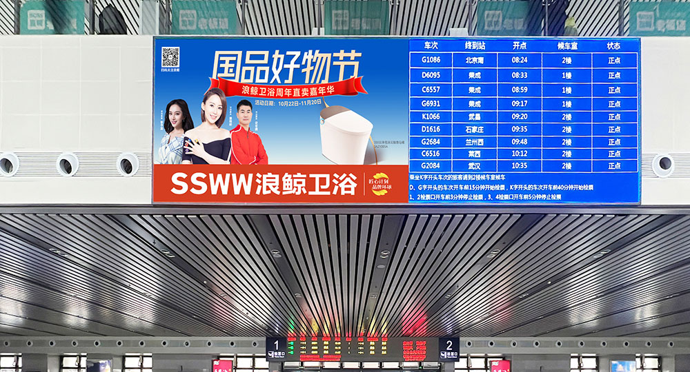高鐵是一個(gè)非常巨大的傳播窗口,旅客來(lái)往數(shù)據(jù)龐大,高鐵廣告具有全國(guó)高覆蓋和區(qū)域強(qiáng)滲透的優(yōu)點(diǎn),能夠?qū)崿F(xiàn)規(guī)?;途珳?zhǔn)化的傳播落地效果。浪鯨衛(wèi)浴選擇全國(guó)高鐵站為傳播媒介進(jìn)行品牌形象展示,通過(guò)各地站點(diǎn)億萬(wàn)次的曝光,再次加深了群眾對(duì)浪鯨品牌實(shí)力的見(jiàn)證,為全國(guó)性營(yíng)銷活動(dòng)提供了強(qiáng)有力的支持。