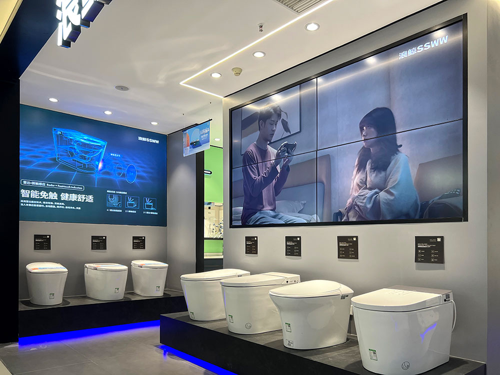 門店內(nèi)智慧云屏循環(huán)播放的浪鯨品牌溫情廣告,將日常生活中細微處的痛點、難點,通過唯美的畫面故事娓娓道來,以體現(xiàn)浪鯨對生活常態(tài)細致入微的觀察,并以品牌力量為消費者提供更為舒適的衛(wèi)浴體驗。