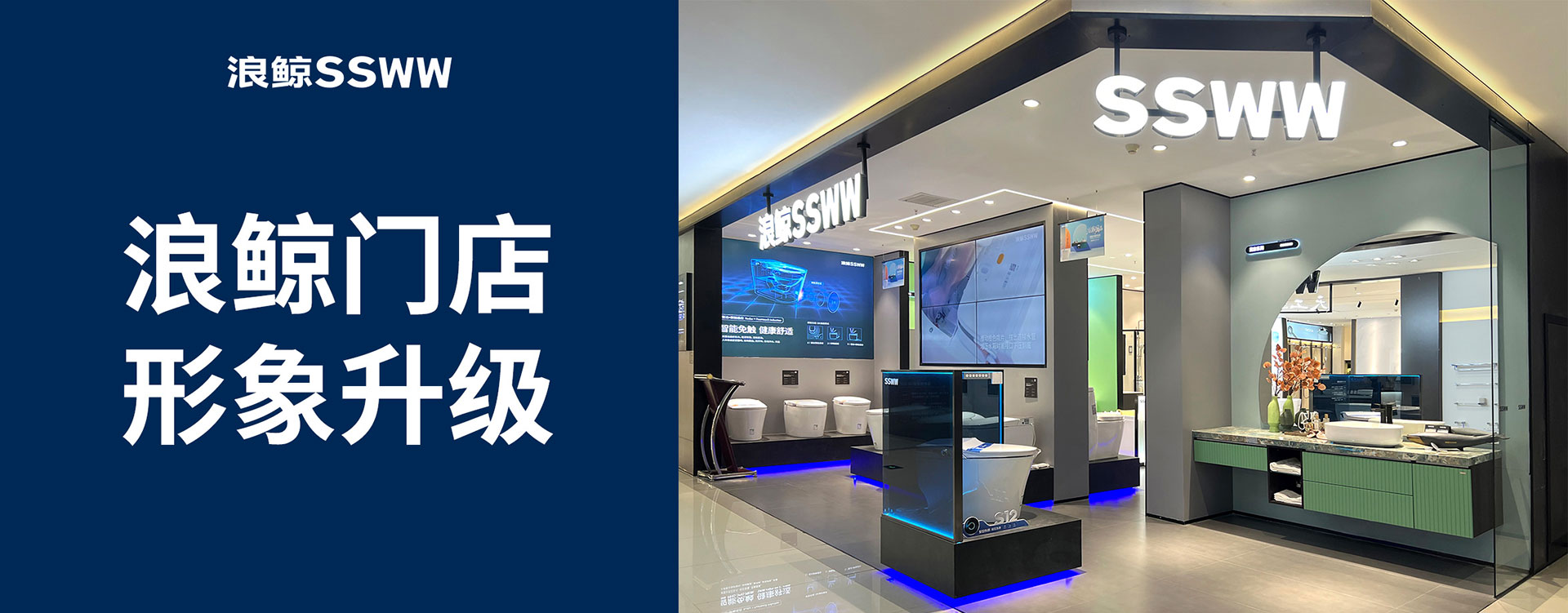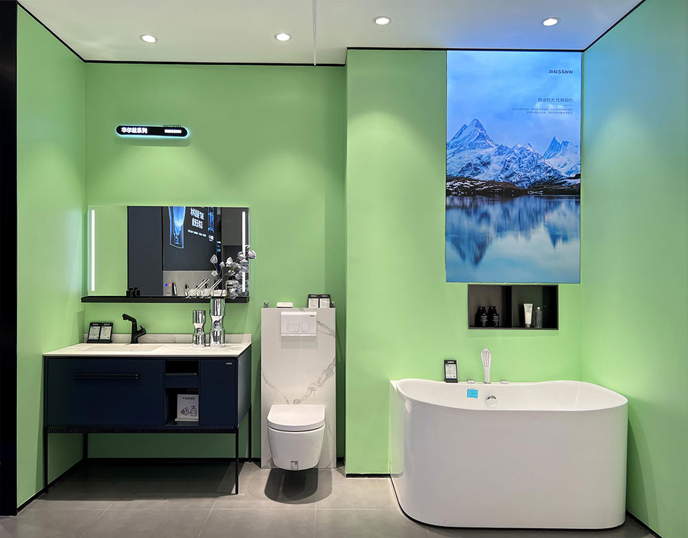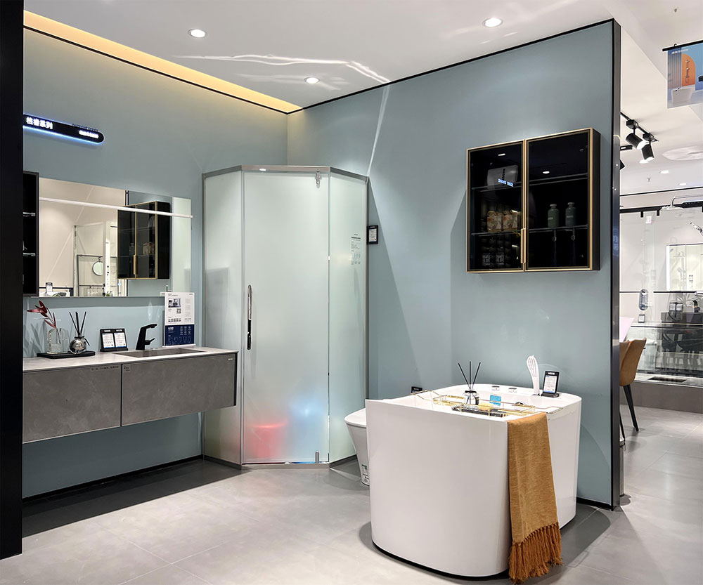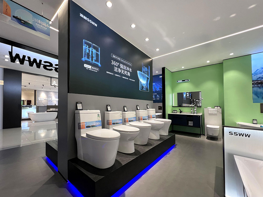 浪鯨衛(wèi)浴合肥政務專賣店,以全新的品牌形象亮相,打造沉浸式空間體驗感。