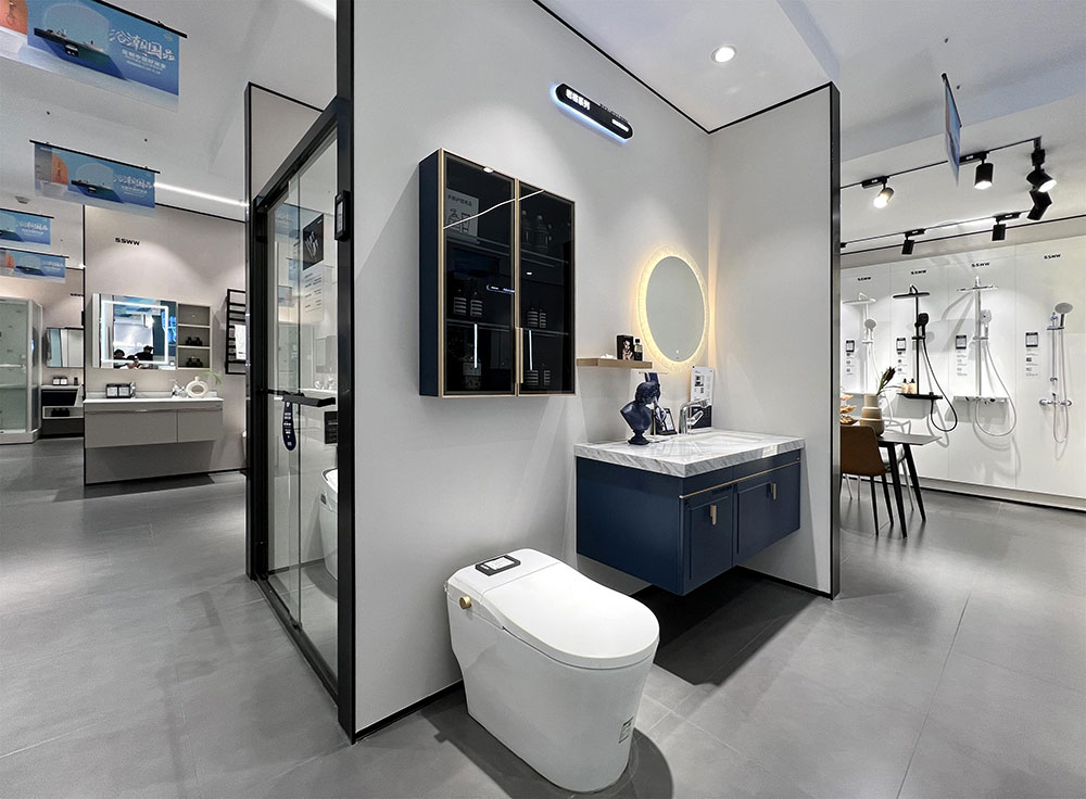 浪鯨衛(wèi)浴專賣店內(nèi),無論是品牌形象設計,還是店內(nèi)產(chǎn)品陳列,處處體現(xiàn)年輕時尚的設計感。