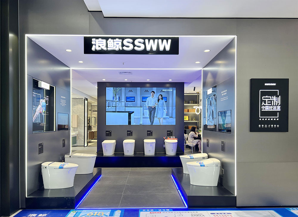 浪鯨衛(wèi)浴武漢歐亞達(dá)專賣店全新升級(jí)終端店面形象,注重智能衛(wèi)浴體驗(yàn)感,創(chuàng)造藝術(shù)與生活相融的空間場(chǎng)景。