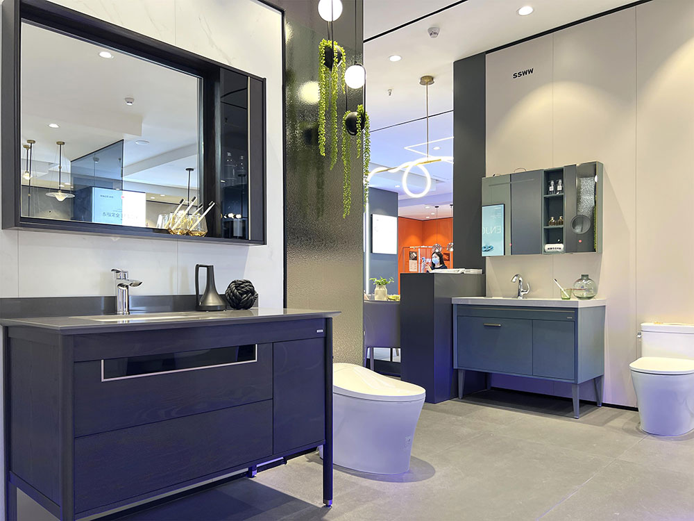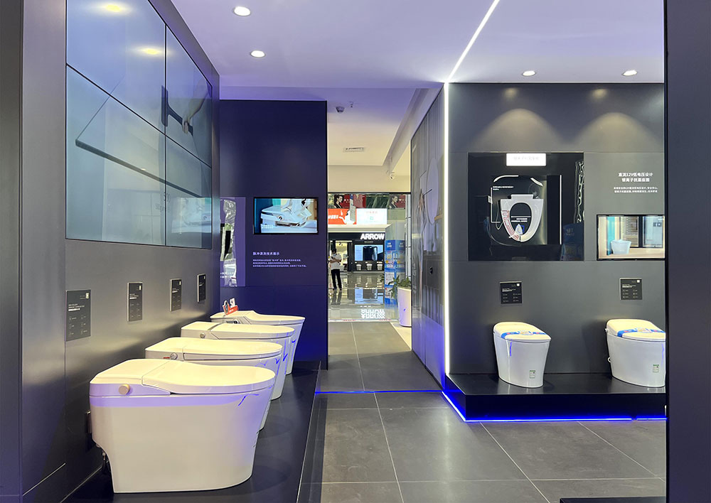 門店整體強(qiáng)調(diào)以細(xì)節(jié)突顯產(chǎn)品質(zhì)感,對(duì)產(chǎn)品的陳列既兼顧了衛(wèi)浴產(chǎn)品的美觀性,也將功能性一一展現(xiàn)。店內(nèi)功能分區(qū)明確,各品類款式新穎,尺寸可選,從智能單品,到定制浴室柜產(chǎn)品,一應(yīng)俱全。