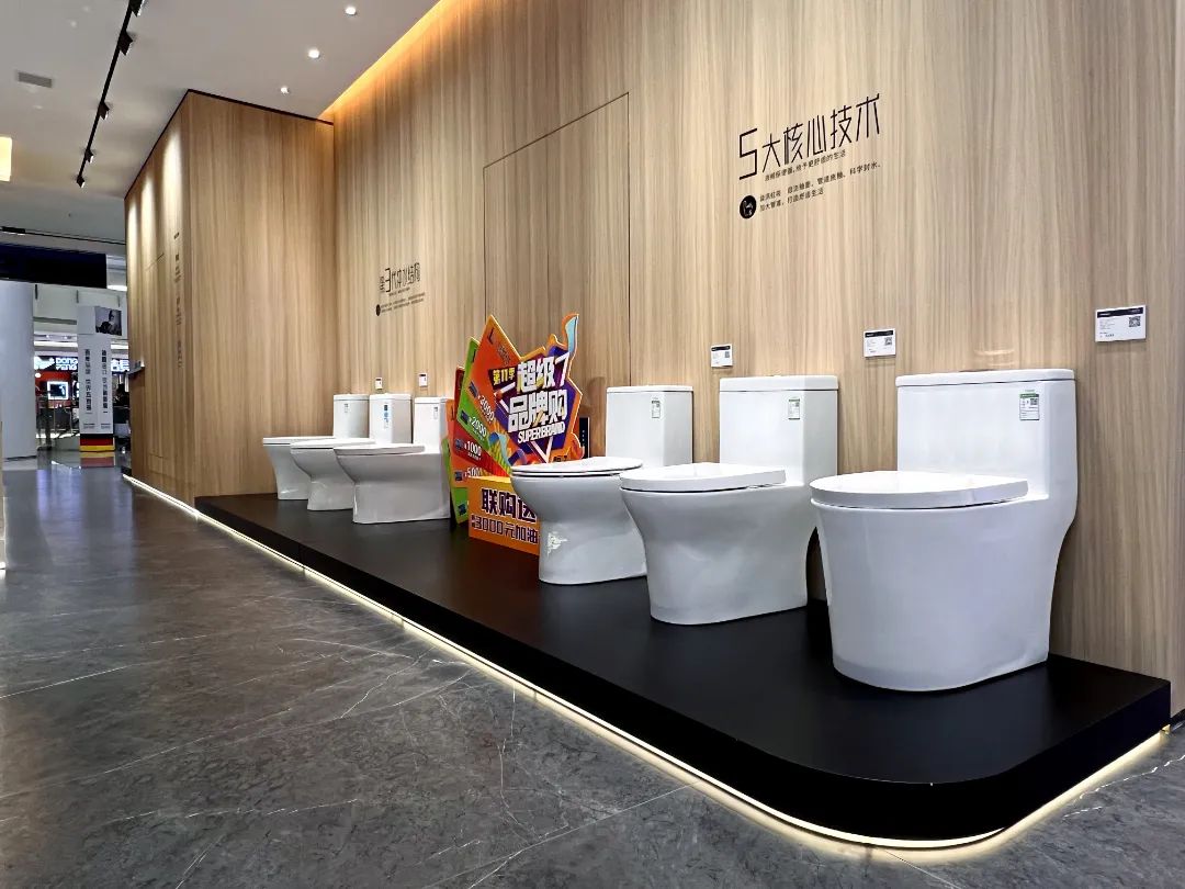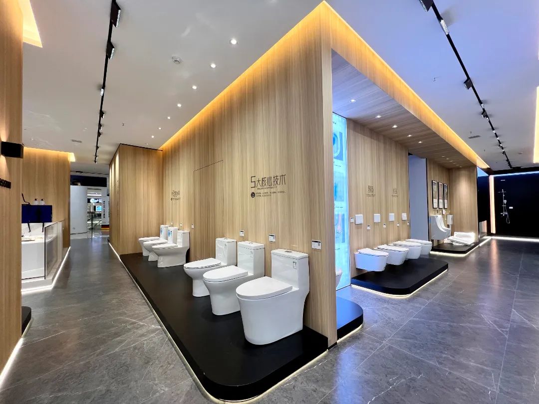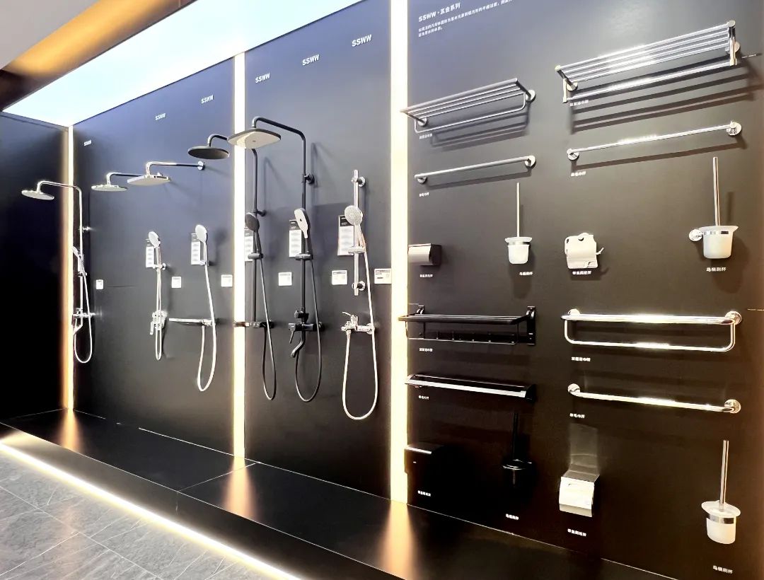 五金區(qū)、馬桶區(qū)陳列規(guī)整而不局促,專業(yè)高端,每款產(chǎn)品,都有大牌風(fēng)范。