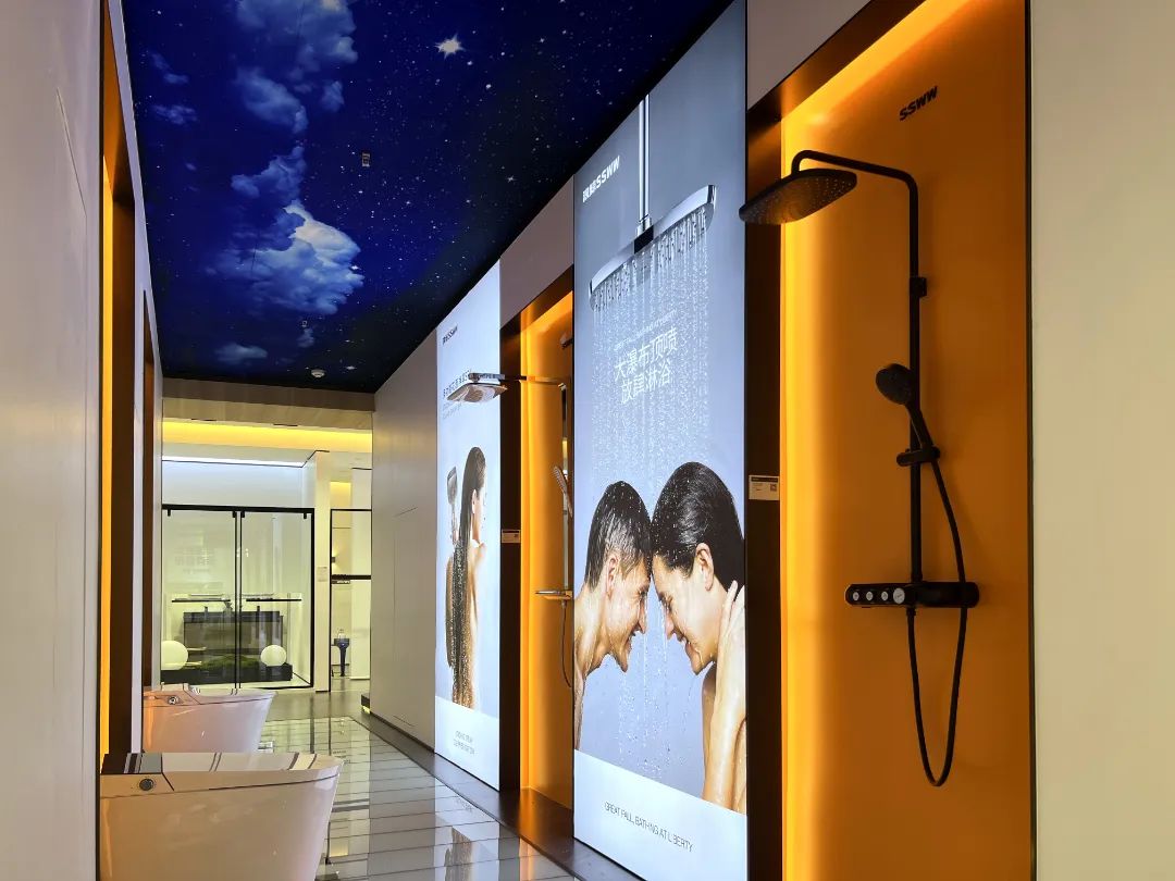 門店以原木色、白色墻面創(chuàng)設(shè)家的感覺,沉浸在溫馨場景中,移步到個性化風(fēng)格突顯的浪鯨衛(wèi)浴樣板間,更使人著迷。