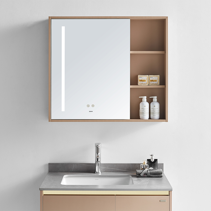 主柜含巖板臺(tái)面 : 800×500×480mm 智能鏡柜 : 800×120×707mm 材質(zhì) :多層實(shí)木板 顏色 :卡其黃