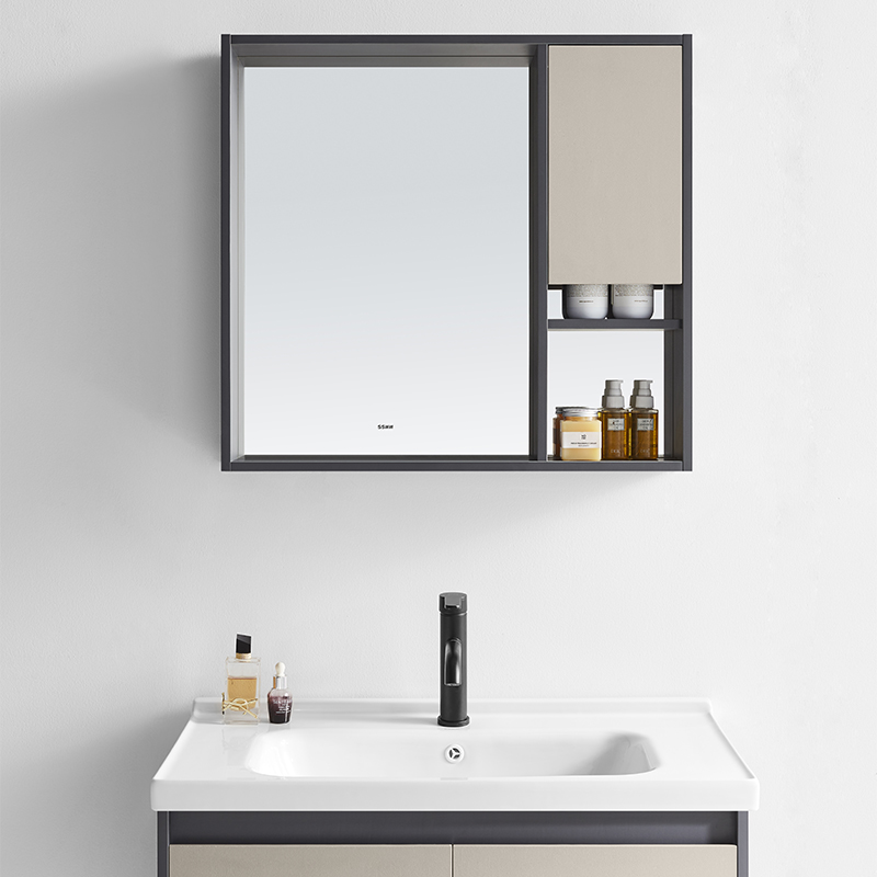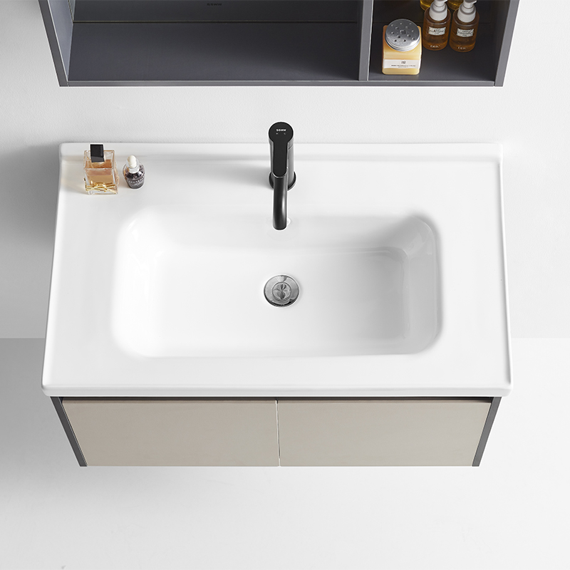 主柜含陶瓷盆 : 710×480×450mm 鏡柜 : 700×120×650mm 材質(zhì) :多層實木板 顏色 :鐵灰 + 卡其灰