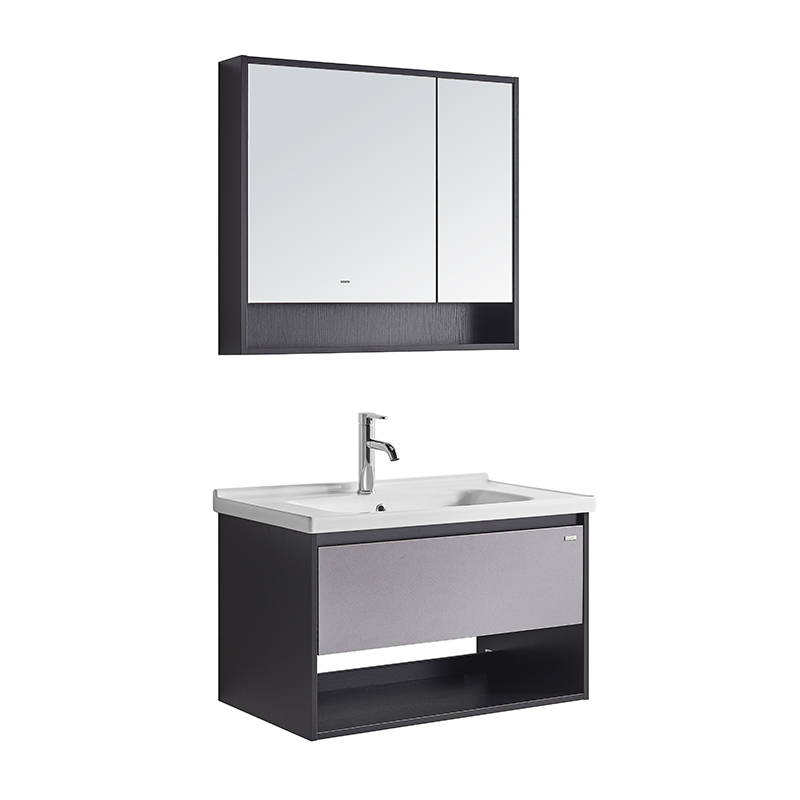 主柜含陶瓷盆 : 810×480×510mm 鏡柜 : 800×120×700mm 材質(zhì) :多層實(shí)木板 顏色 :橄欖木皮紋 + 黑木紋