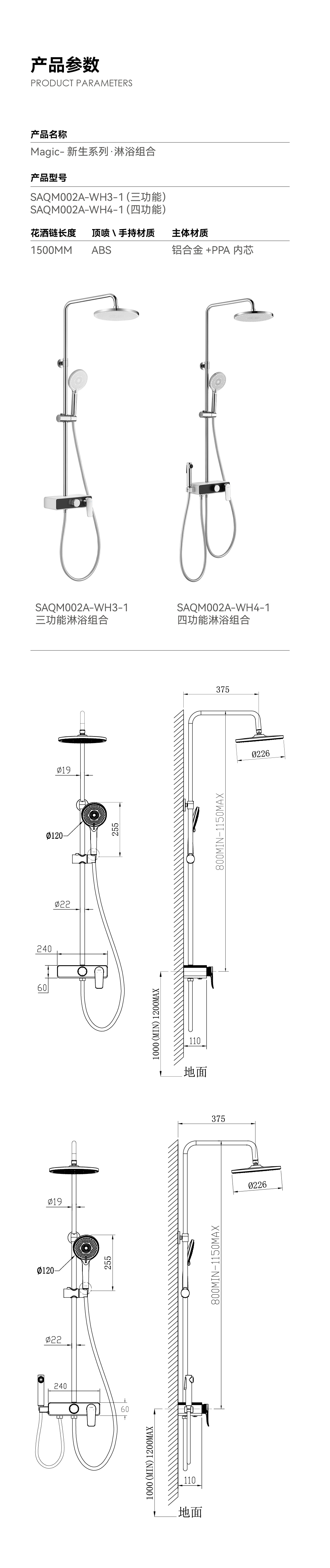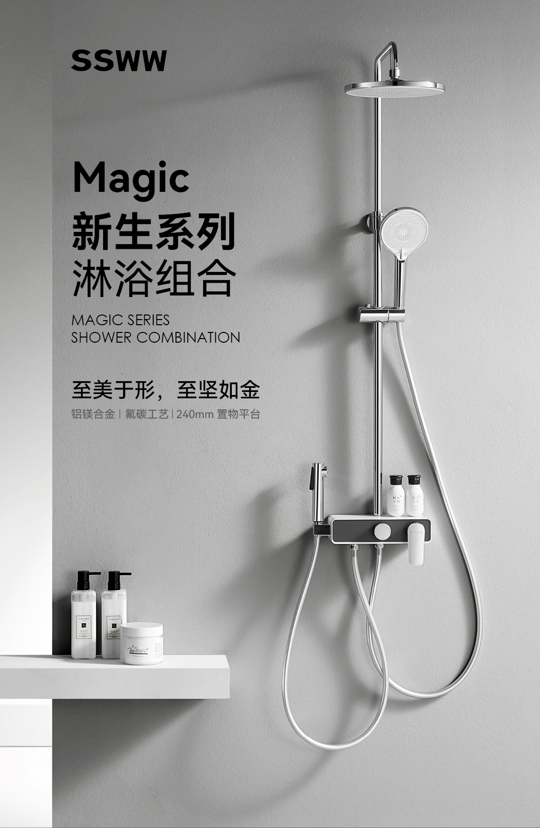 置物淋浴組合( 鉻色 + 磨砂灰 )