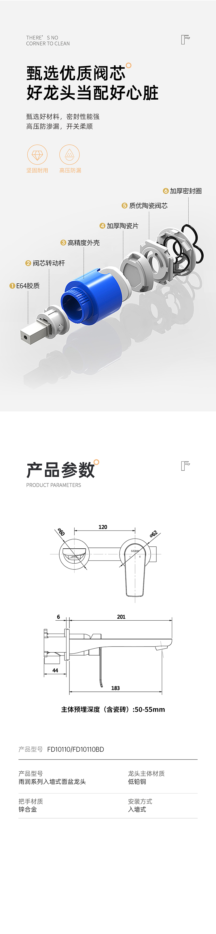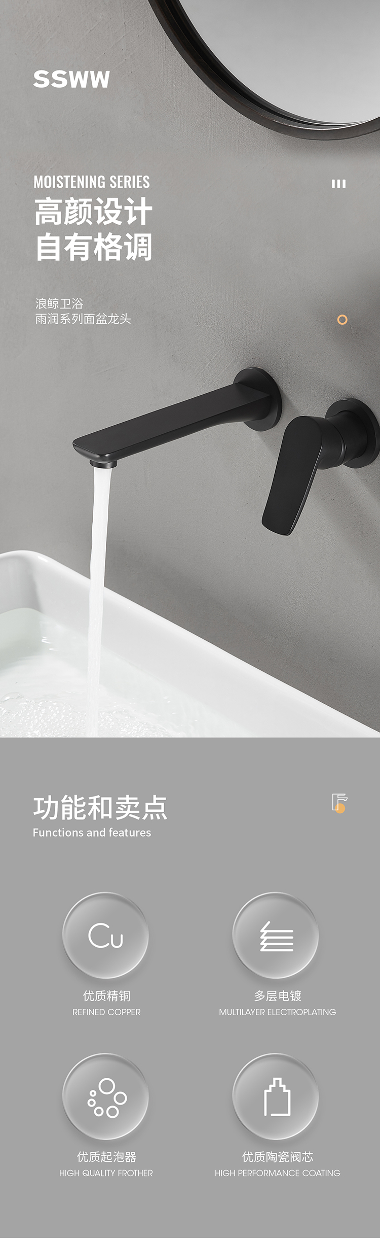 入墻式面盆龍頭( 啞光黑 )