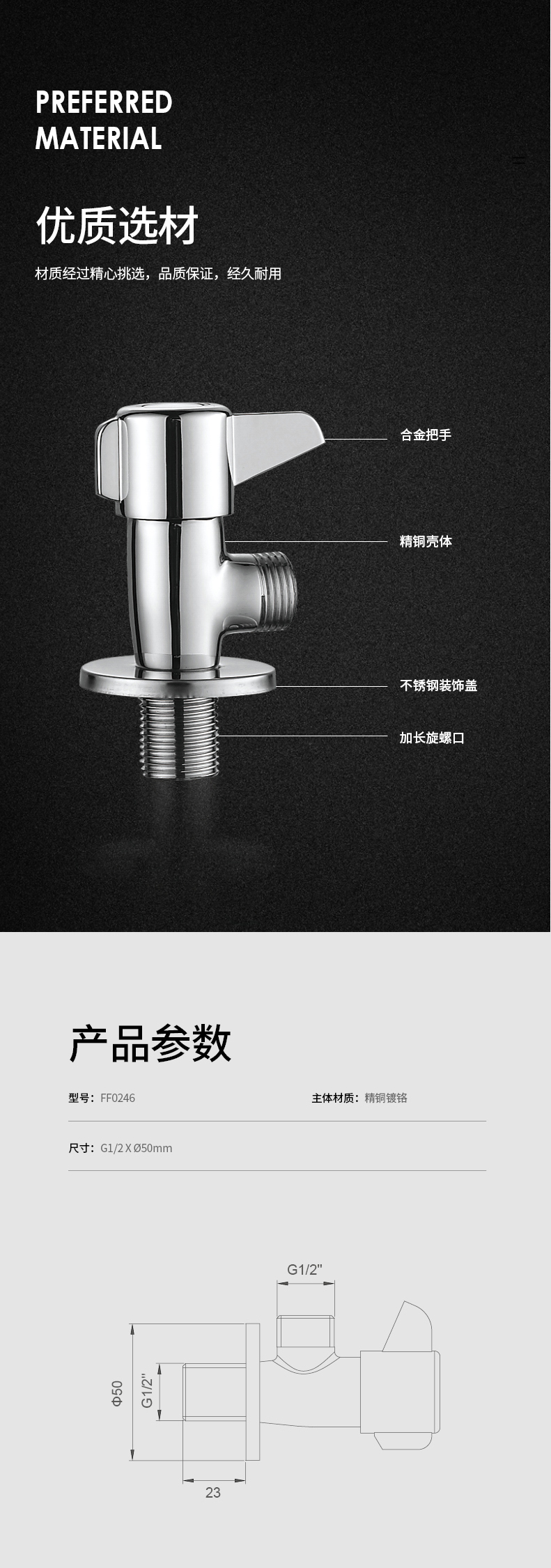 螺紋加長型角閥 尺寸 : 92mm 接口:G1/2*24