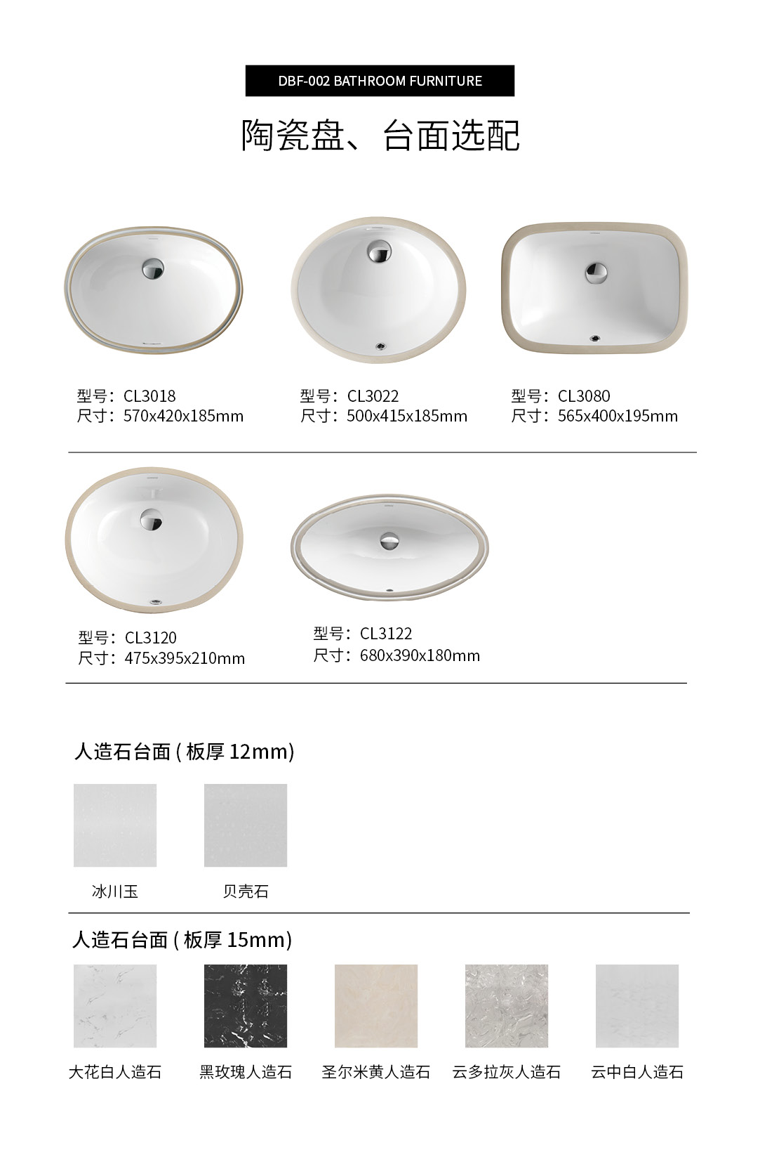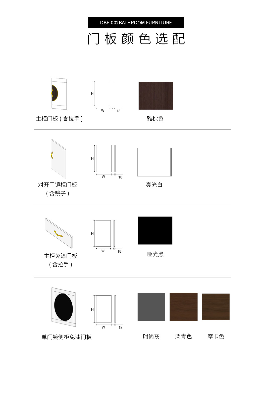 主柜:含柜體、門(mén)板、SSWW 鉸鏈、拉手、緩沖導(dǎo)軌、抽屜; 掛柜:含柜體、門(mén)板(圓鏡門(mén)板)、SSWW 鉸鏈、拉手; 臺(tái)面:含后擋水高 65mm; 門(mén)板材質(zhì):油漆 陶瓷盆、龍頭另計(jì)費(fèi)用。