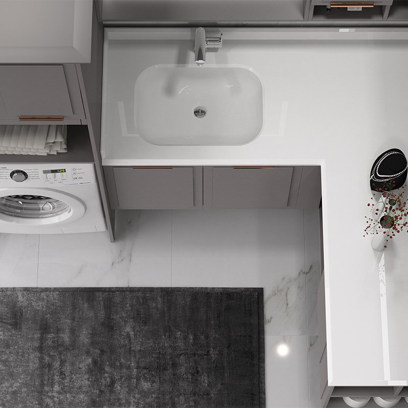 主柜:含柜體、門板、SSWW 鉸鏈、拉手、柜腳、收口板; 掛柜:含柜體、門板、SSWW 鉸鏈、拉手、頂冠; 掛鏡:含 LED 燈帶、開關(guān); 臺(tái)面:含后擋水高 65mm; 門板材質(zhì):吸塑 陶瓷盆、龍頭另計(jì)費(fèi)用。