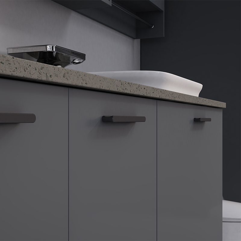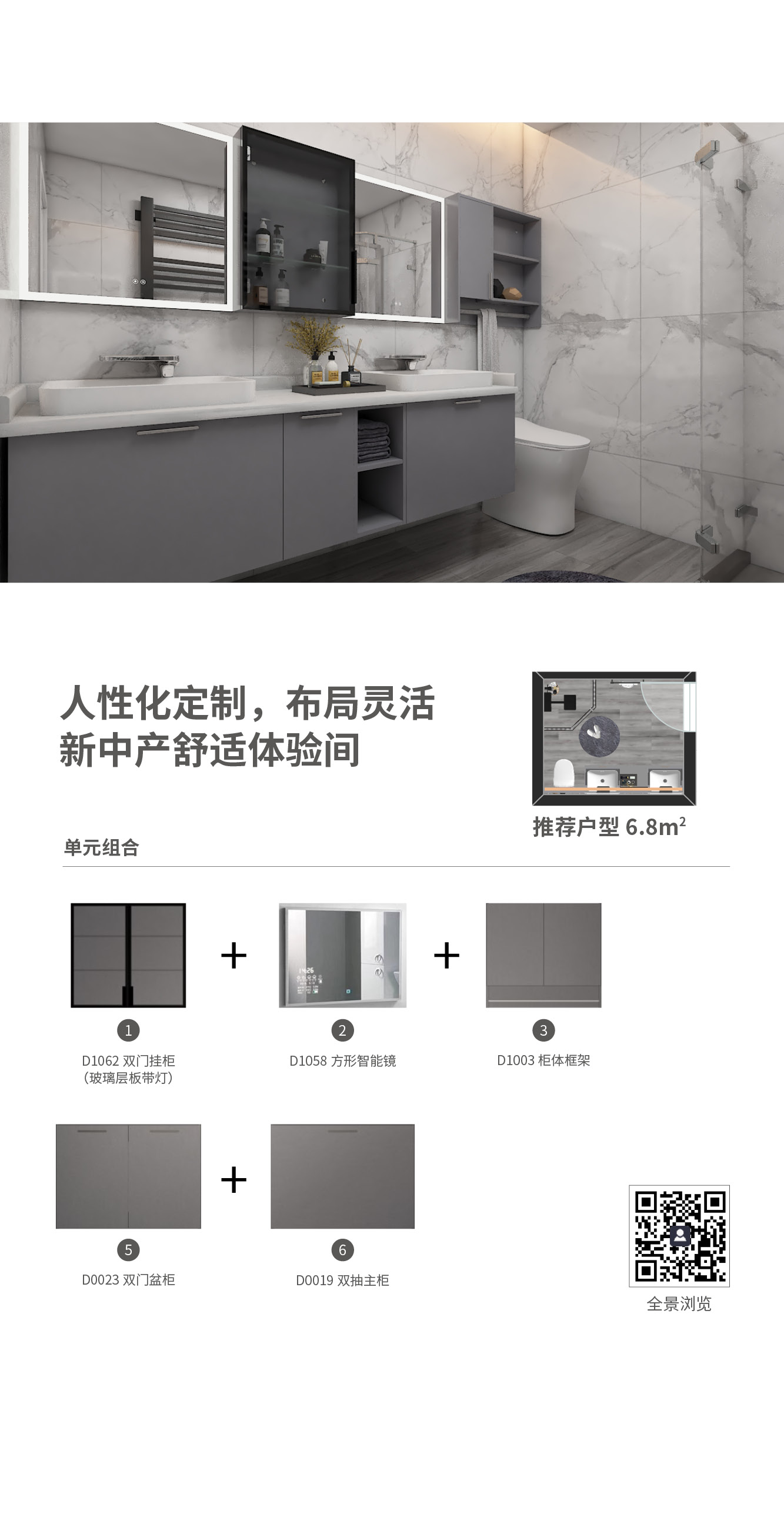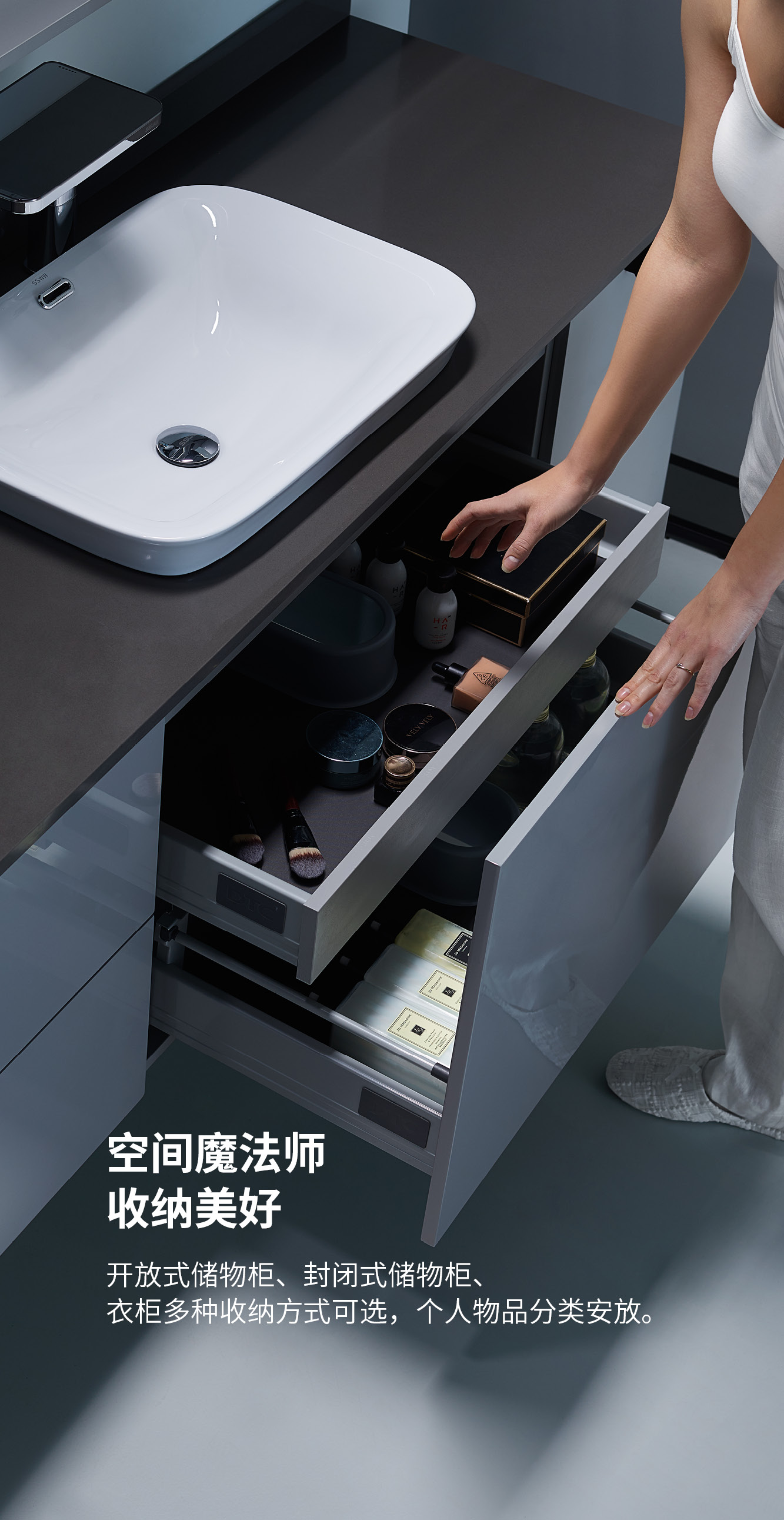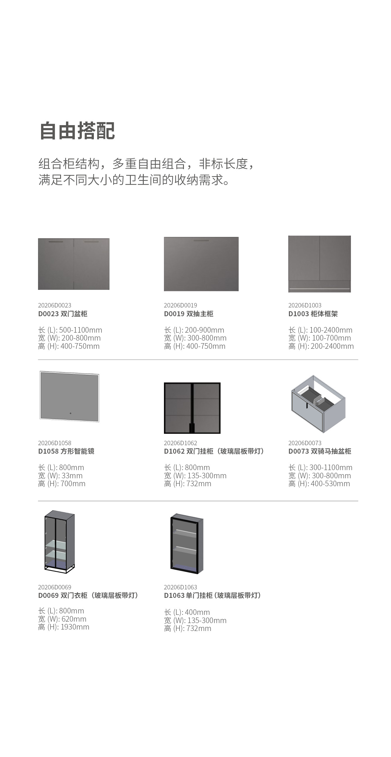 主柜:含柜體、緩沖導軌、抽屜(U 抽、方抽、騎馬抽)、門板、SSWW 鉸鏈; 掛柜:含柜體、門板、層玻(帶燈)、SSWW 鉸鏈; 掛鏡:含 LED 燈帶、開關; 臺面:含后擋水高 65mm; 門板材質:油漆 陶瓷盆、龍頭另計費用。