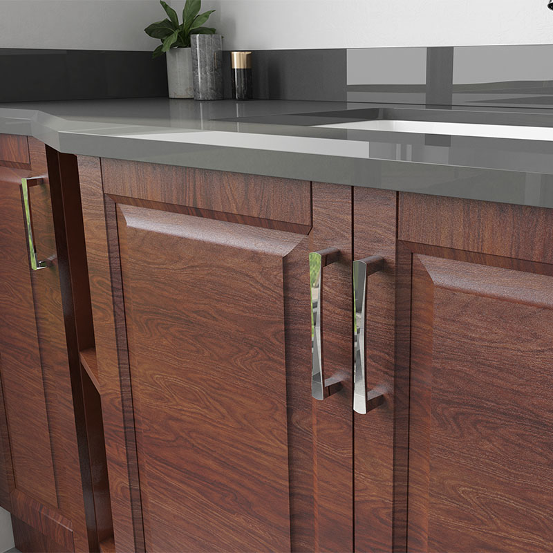 主柜:含柜體、門(mén)板、SSWW 鉸鏈、緩沖導(dǎo)軌、抽屜、藤籃、拉手、地腳線、收口板; 掛柜:含柜體、門(mén)板(玻璃)、拉手、層玻、SSWW 鉸鏈、毛巾?xiàng)U、頂冠、收口板; 掛鏡:含 LED 燈帶、開(kāi)關(guān); 臺(tái)面:含后擋水高 65mm; 門(mén)板材質(zhì):油漆 陶瓷盆、龍頭另計(jì)費(fèi)用。