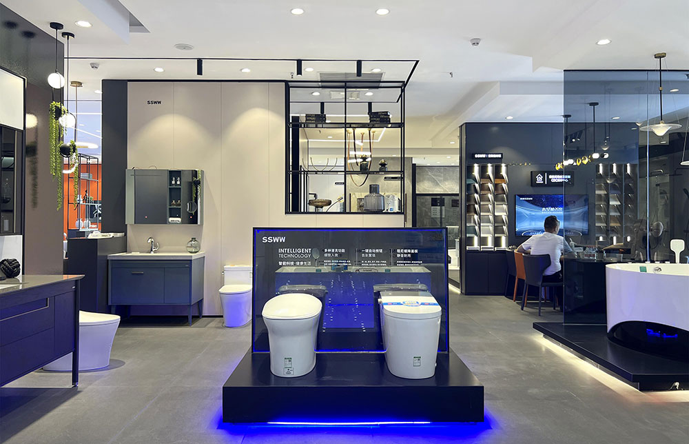 浪鯨衛(wèi)浴武漢歐亞達專賣店全新升級終端店面形象,注重智能衛(wèi)浴體驗感,創(chuàng)造藝術(shù)與生活相融的空間場景。