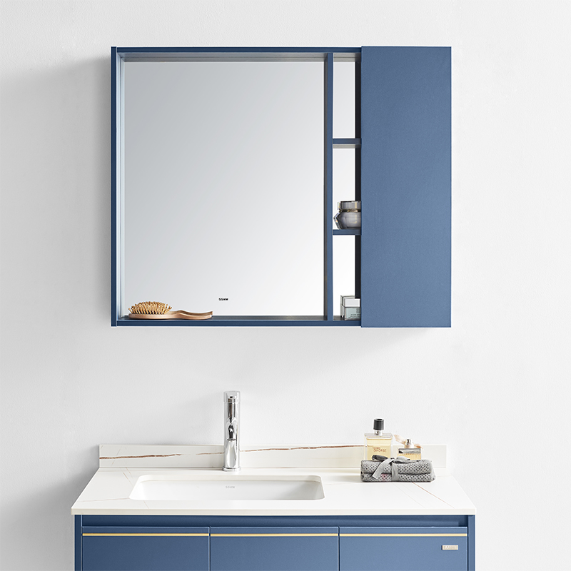 主柜含巖板臺(tái)面 : 900×500×450mm 鏡柜 : 850×120×700mm 材質(zhì) :多層實(shí)木板 顏色 :蔚藍(lán)