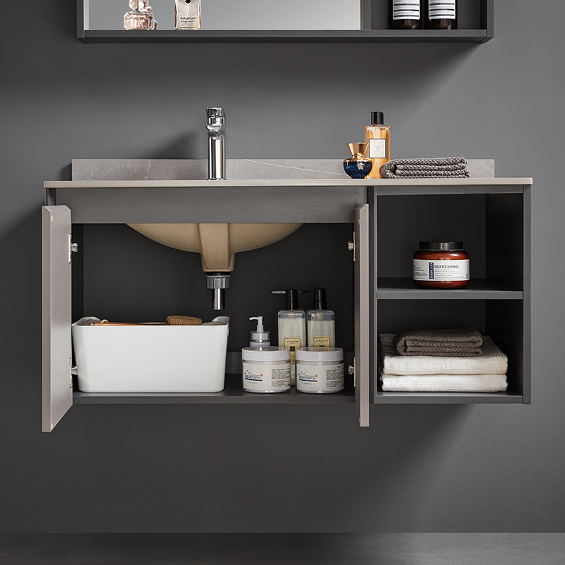 全柜 : 1000X515X1870mm 主柜 : 990X510X450mm 掛鏡 : 950X130X720mm 臺(tái)面 : 阿瑪尼灰?guī)r板 A 紋 主色調(diào) : 深褐卡其 / 鐵灰色